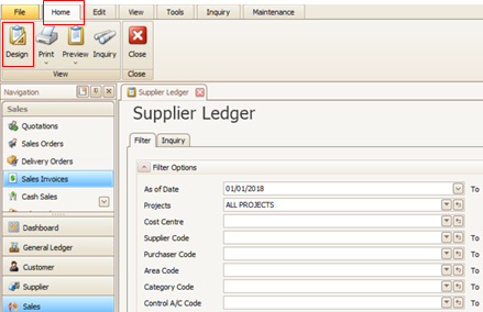 Once you open the Design, it will show you all the report/print format available in the certain transaction or report.