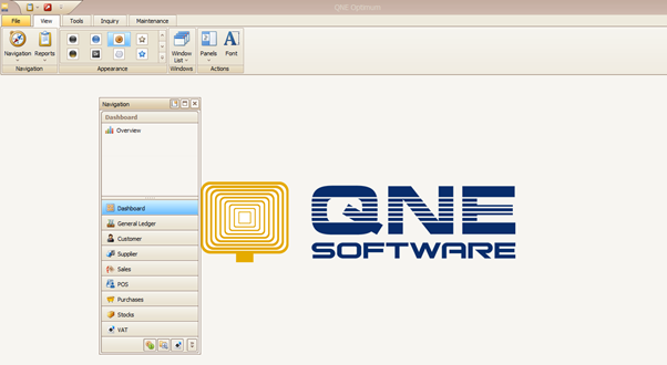 A Navigation Pane provides the main functionalities in the system and it is organized by Modules, and each Modules consist of Transactional Forms and Maintenance.