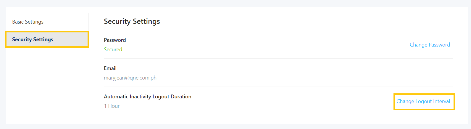 2. Under Security Settings, click Change Logout Interval