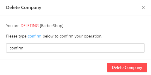 3. When the Delete Company confirmation is prompted, type "confirm" in the text box, then click Delete Company.