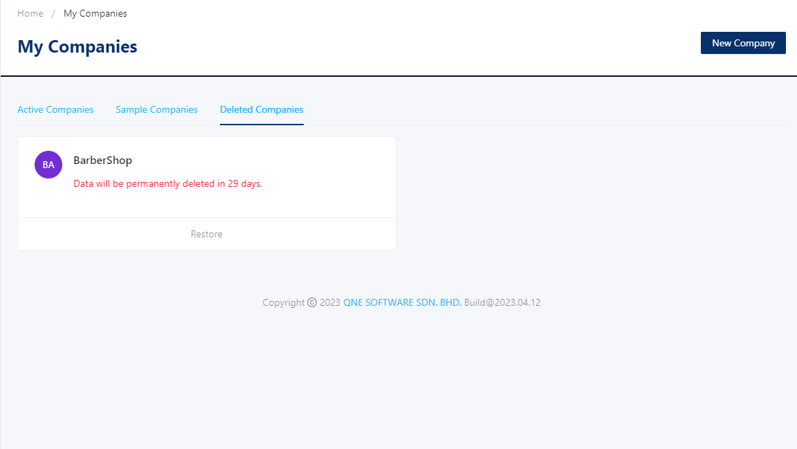 Deleted companies will be moved to the Delete Companies tab and will be deleted permanently within 29 days.
