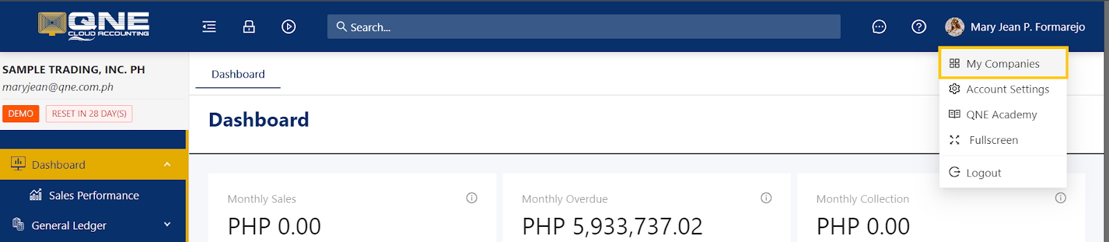 1. In Banner, click the display name then open My Companies.
