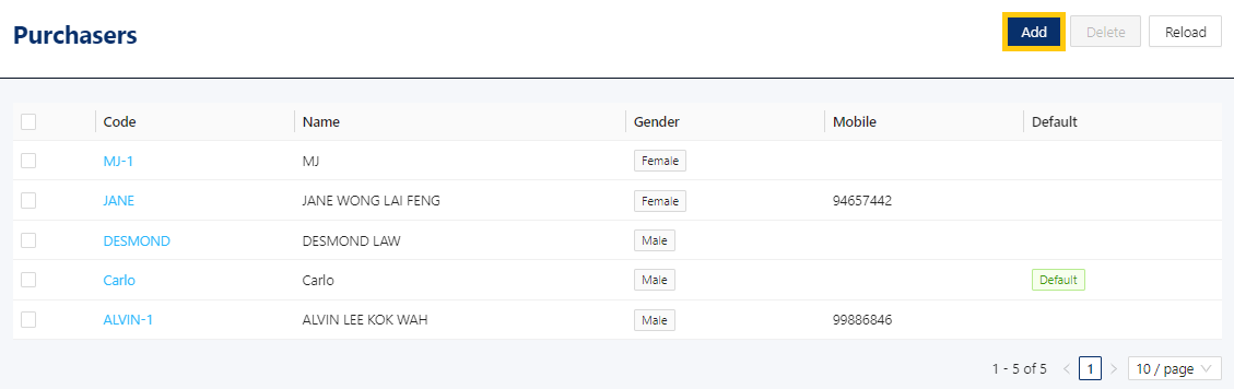 How to Add, Edit and Delete Purchaser