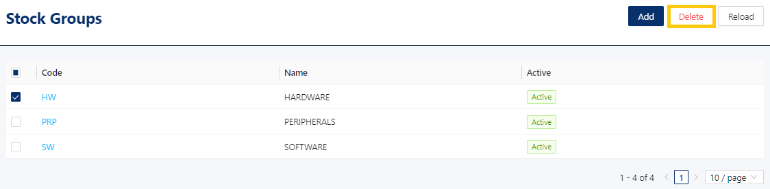 1. In Stock Group List View, tick a group, then click Delete
