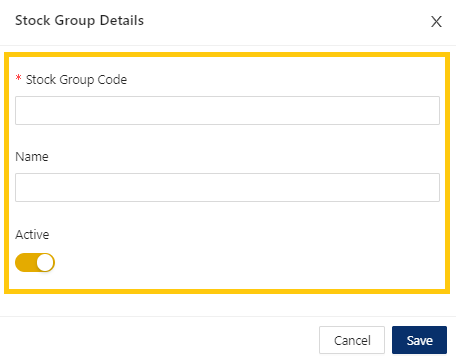 Stock Group Code: This is a compulsory field with a maximum length of 20 alphanumeric characters.