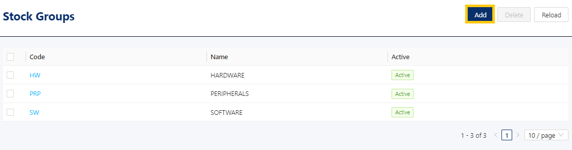 2. In Stock Group list view, click Add