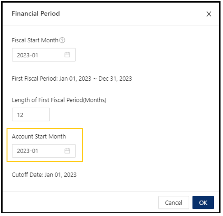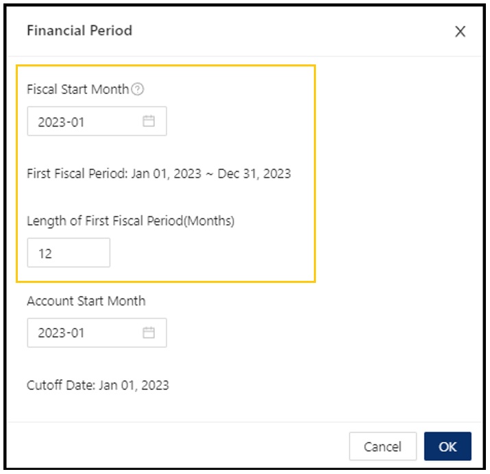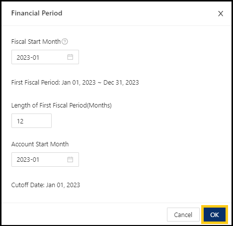 Note: Once the system already has a transaction, the financial period is no longer editable.