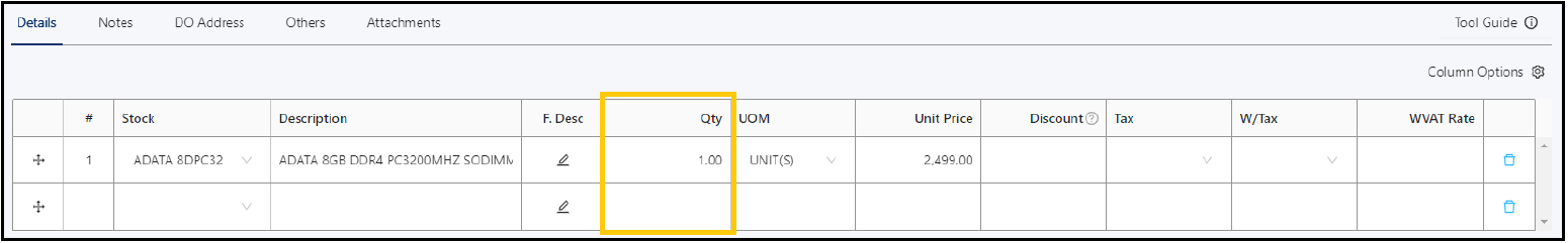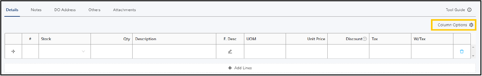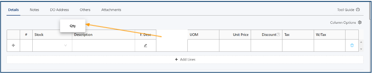 Set up preferred column order to show while creating Sales Invoice transaction.