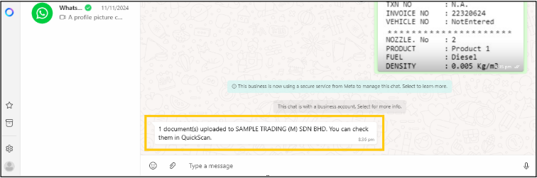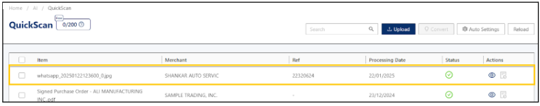 Scan or forward digital invoices to the registered WhatsApp number or upload scanned copies directly into QuickScan.