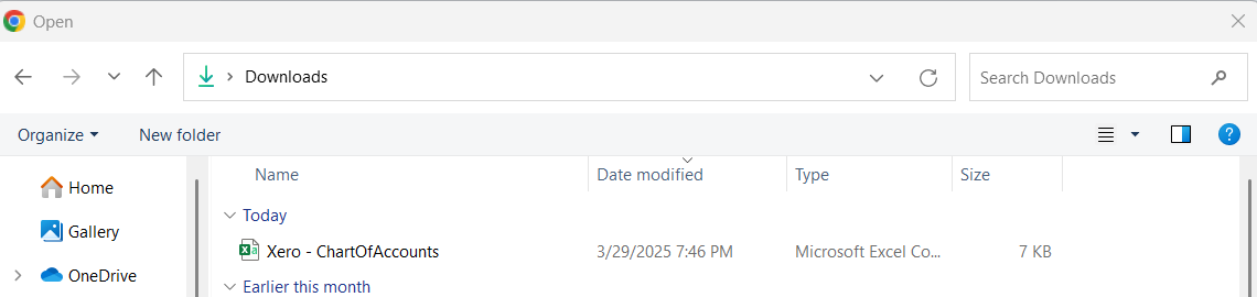 Export its Chart of Accounts from Xero in CSV format.