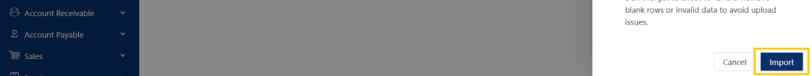 Click Import to process the uploaded data.