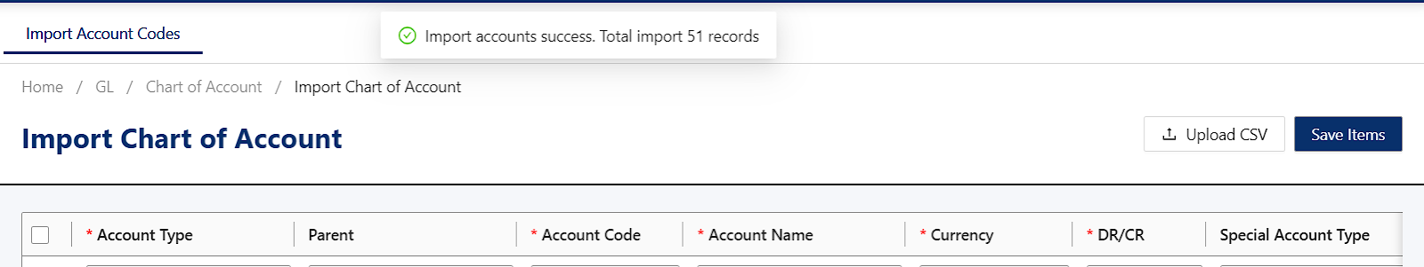 Review the imported records to ensure accuracy. Then, once verified, click Save Items to finalize the import.