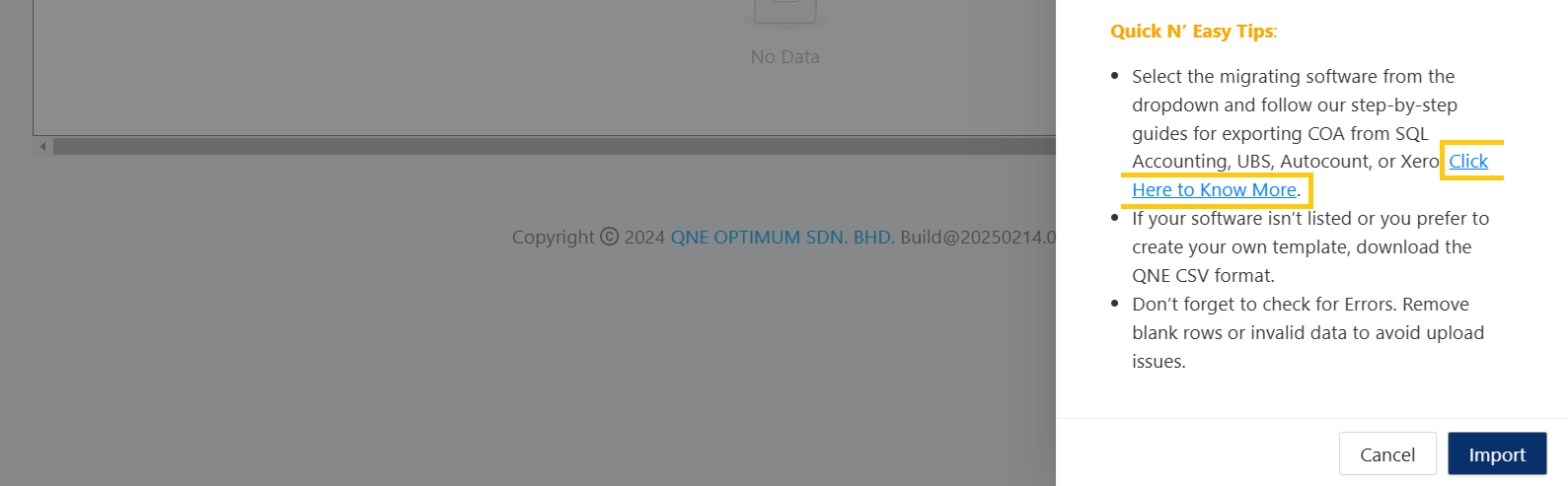 Upload and import it into QNE AI Cloud Accounting in minutes.