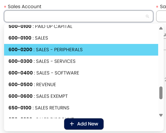 Sales Account – For credit sales (e.g., 4030 – Sales: Peripherals).