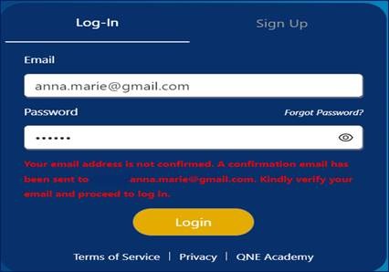 On their first login attempt, the user will receive a message indicating that their email address has not yet been confirmed.