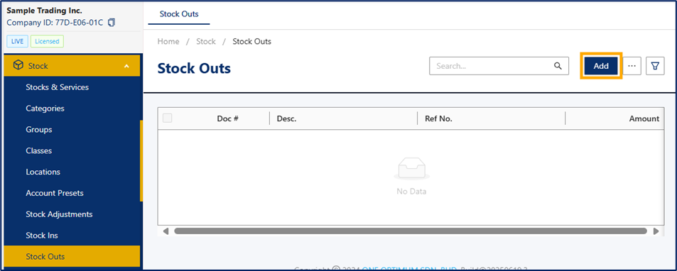 - Stock Out is used to record inventory issued without a Sales Invoice, such as internal usage or inter-location transfers.