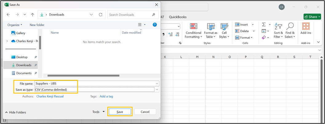 Note: Make sure to make the file format in CSV format instead of Excel format.