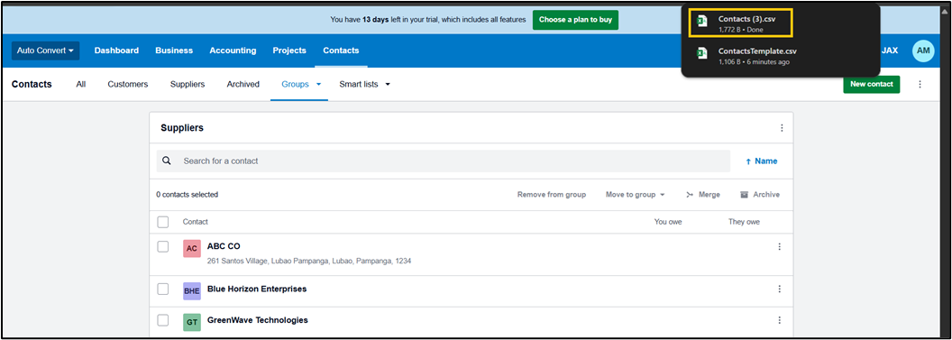 The Customer Contacts will automatically be saved in the Downloads folder as a CSV file.
