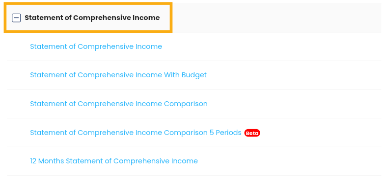 3. Scroll down and click the expand icon (+) beside Statement of Comprehensive Income to view available formats.