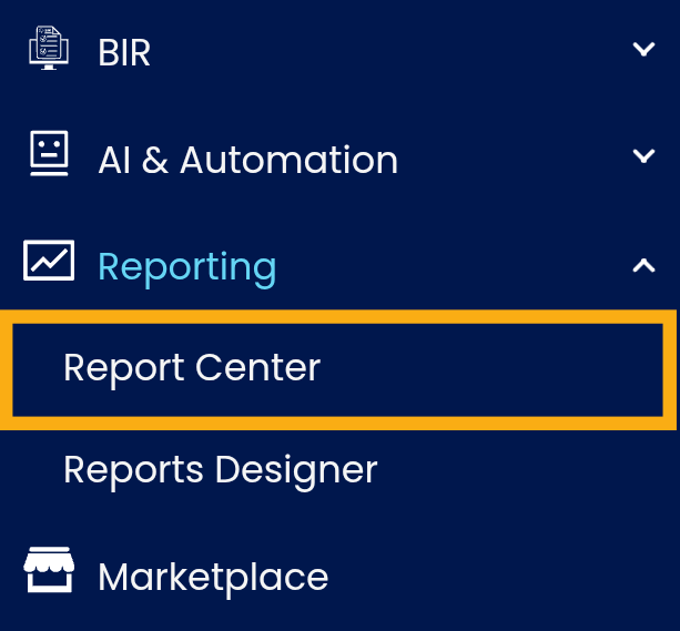 1. In the navigation pane, go to Reporting > Report Center.