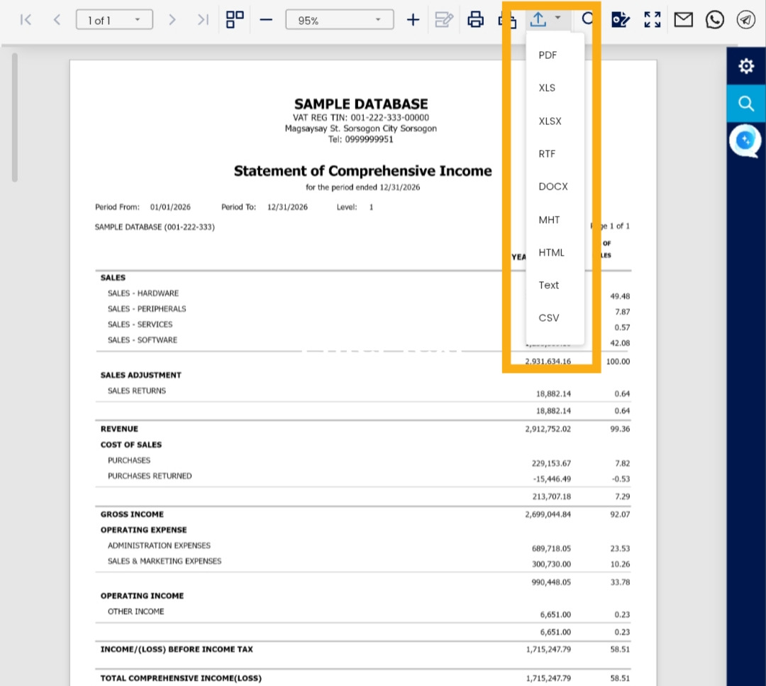 7. Export or Print the Report. Use the available options to export the report (e.g., PDF, Excel) or print it directly for distribution.