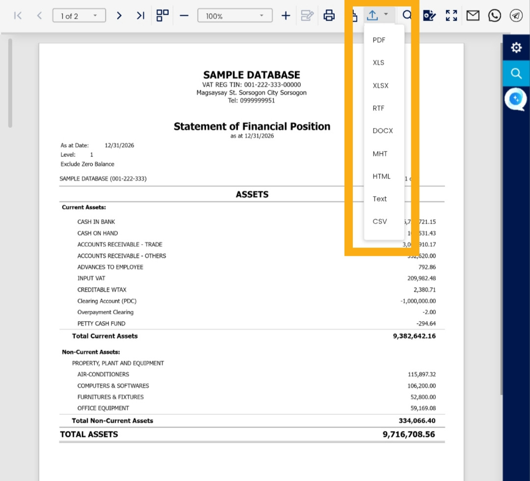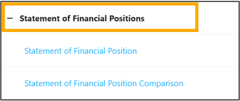 Scroll down and click the expand icon (+) beside Statement of Financial Positions to view available formats.