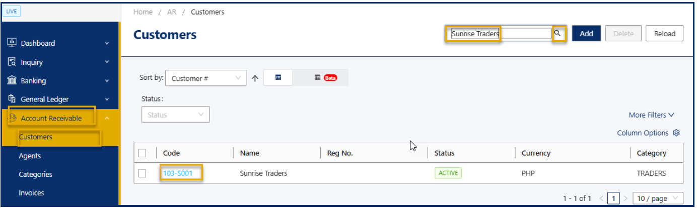 Navigate to Accounts Receivable > Customer.