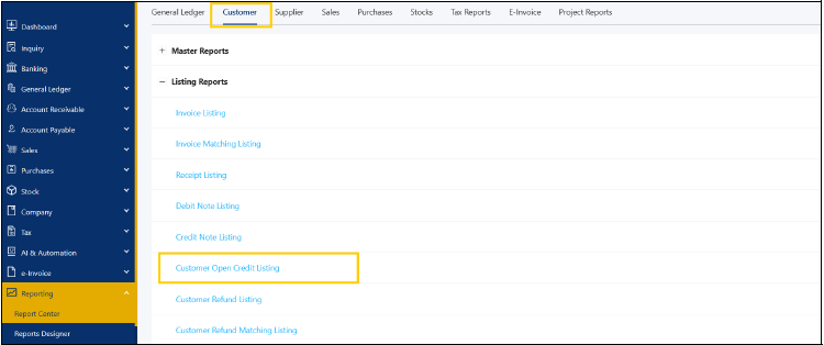 The Customer Open Credit Listing report in QNE AI Cloud provides a summary of all unused or unapplied credit transactions available for each customer. This includes credit notes, advance payments, or deposits that can be applied against future invoices.