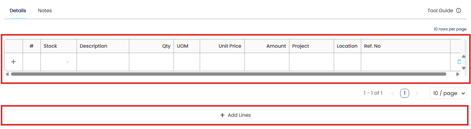 Click Add Lines to include additional stock items.