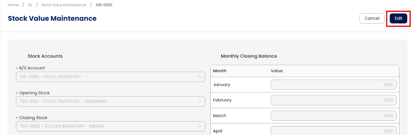 Open the stock value maintenance record that you created, then click Edit.