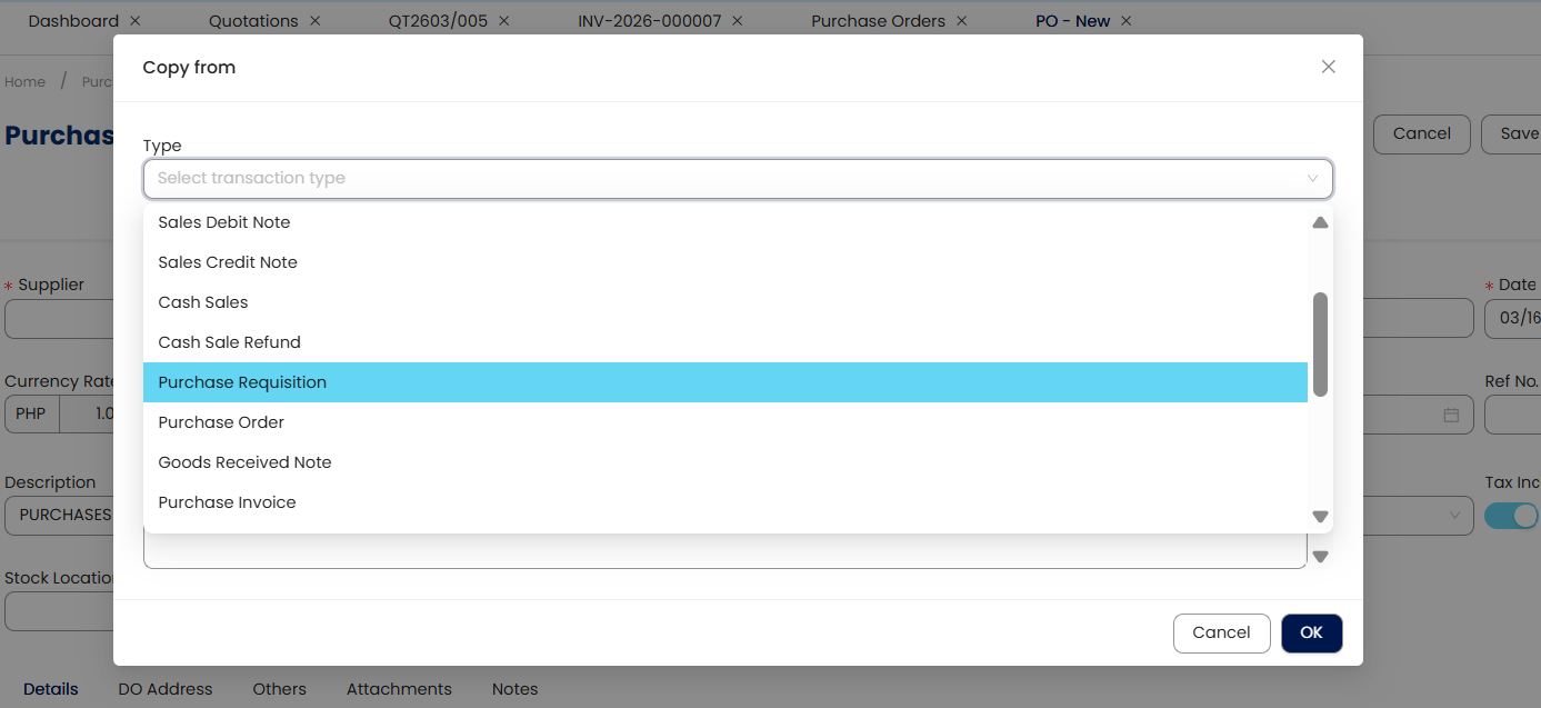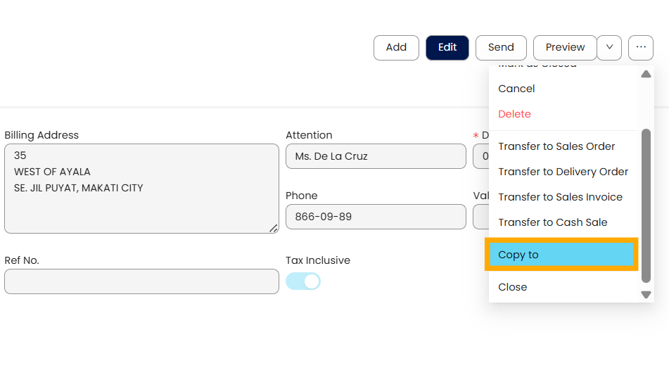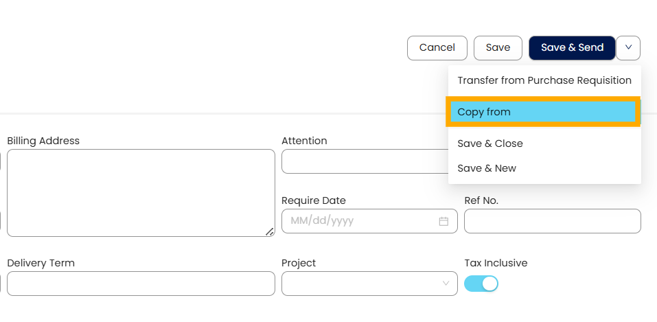 The Copy From and Copy To functions streamline the creation of related Sales, Purchase, and Inventory documents by reusing existing information. These features reduce repetitive data entry, maintain consistency across stages, and increase processing efficiency.
