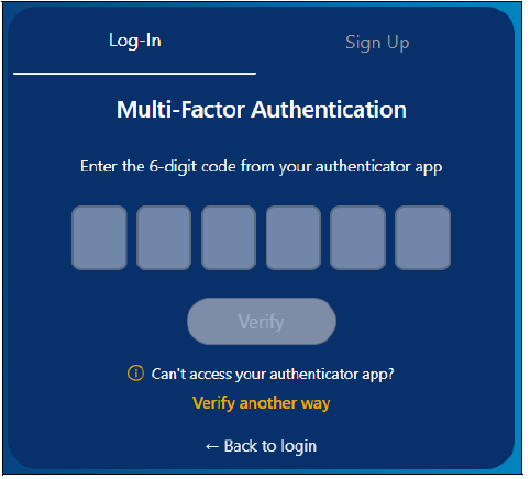 Enter the verification code displayed in your authenticator app. Click Verify.