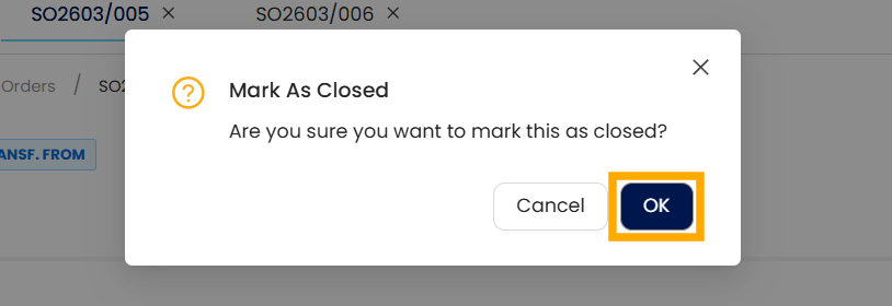 Using the Mark as Closed Option in Sales Transactions