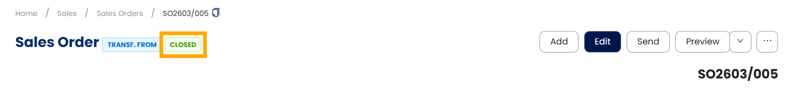 Open the Sales transaction (e.g., Sales Order) to be closed. Click the tri-dot button > Click Mark as Closed.