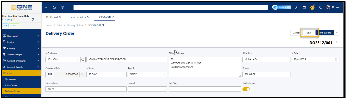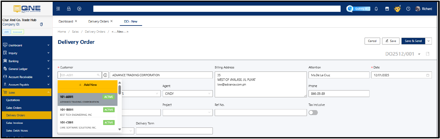 Delivery Orders (DOs) in QNE AI are critical for tracking the movement of goods from your business to your customers. They act as confirmation that items have been dispatched, help streamline inventory management, and ensure accurate record-keeping for sales and logistics. Efficient management of delivery orders ensures timely fulfillment, minimizes errors, and provides transparency to both the accounting and operations teams.
