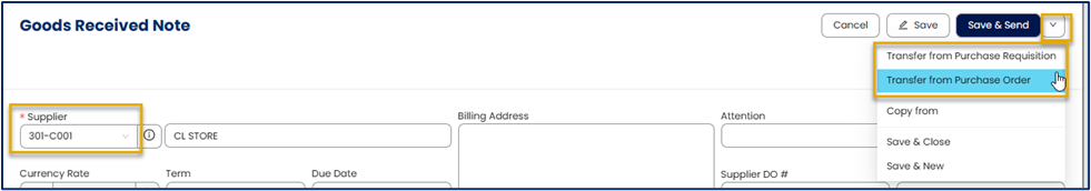 Option 1: Create a Goods Received Note from a Purchase Requisition or Purchase Order