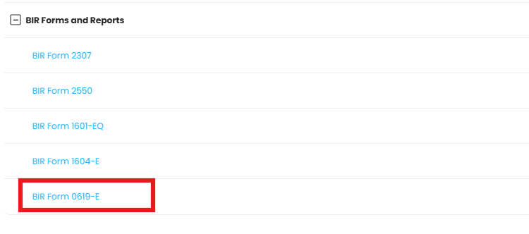 1. Select BIR Form 0619-E from the report list.