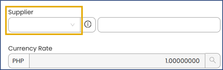 In the Supplier field, select the supplier from whom the goods or services were purchased.